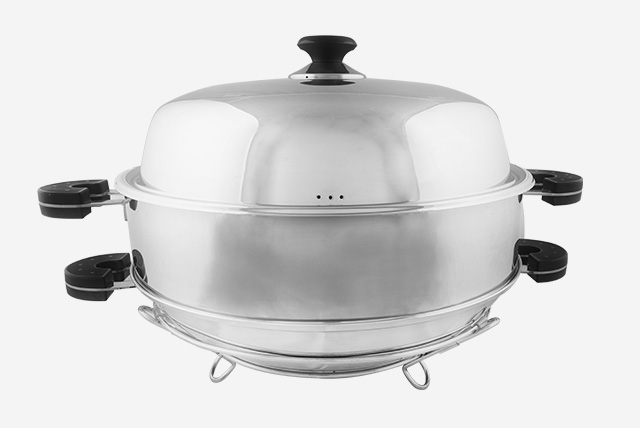 Mega Wok ini bisa digunakan untuk menggoreng, mengukus 1 atau 2 tingkat. Dengan kapasitas yang besar memudahkan untuk memasak jumlah yang banyak. Terbuat dari Stainless Steel.