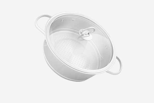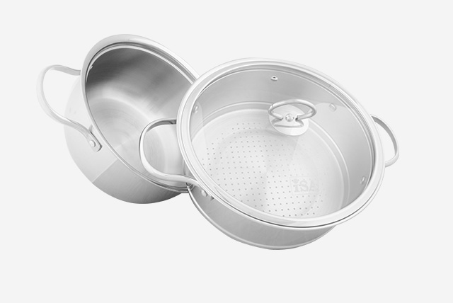 Untuk memanaskan atau mengukus makanan. Memiliki 2 tingkat. Bisa juga digunakan menjadi panci biasa. Dilengkapi tutup kaca dan terbuat dari Stainless Steel.